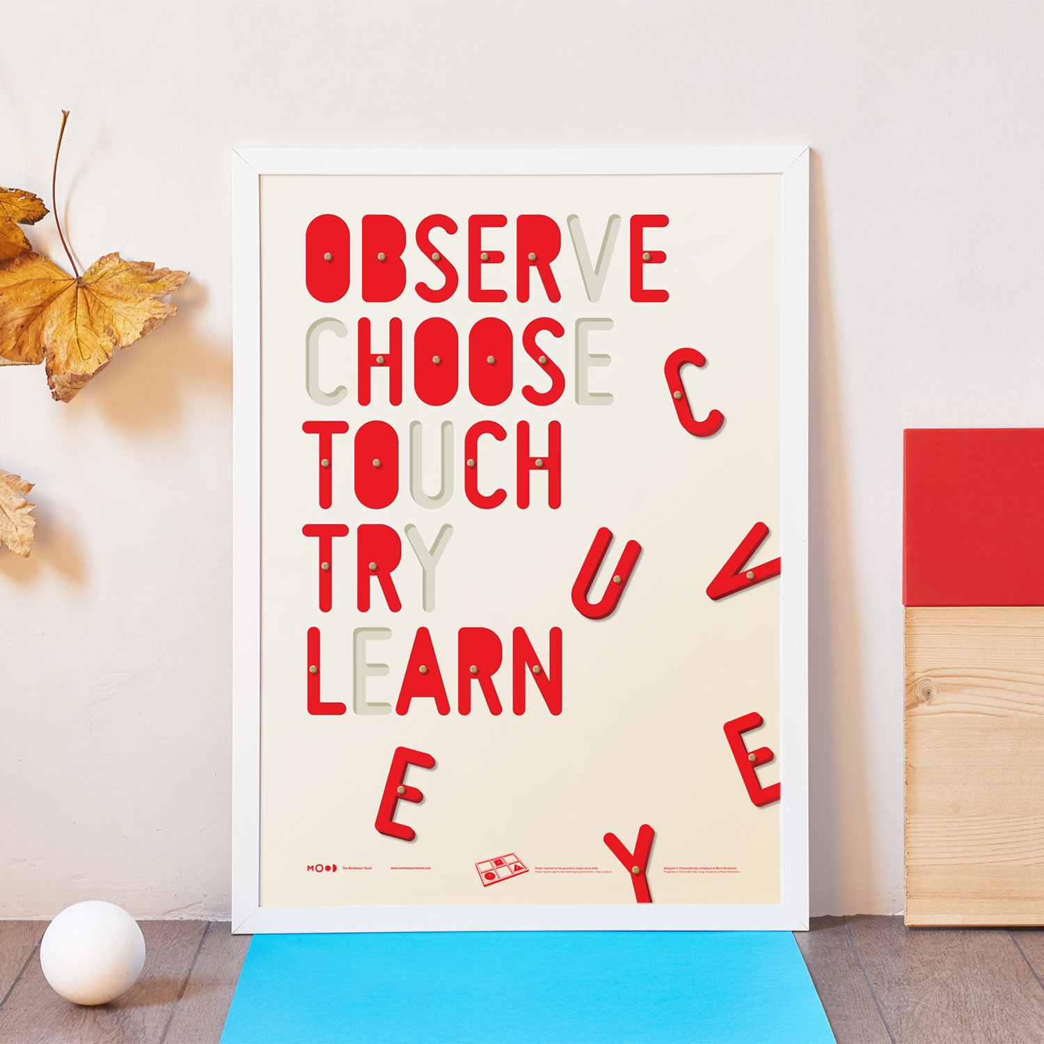 Poster ispirato al tema degli incastri delle figure geometriche di Maria Montessori.